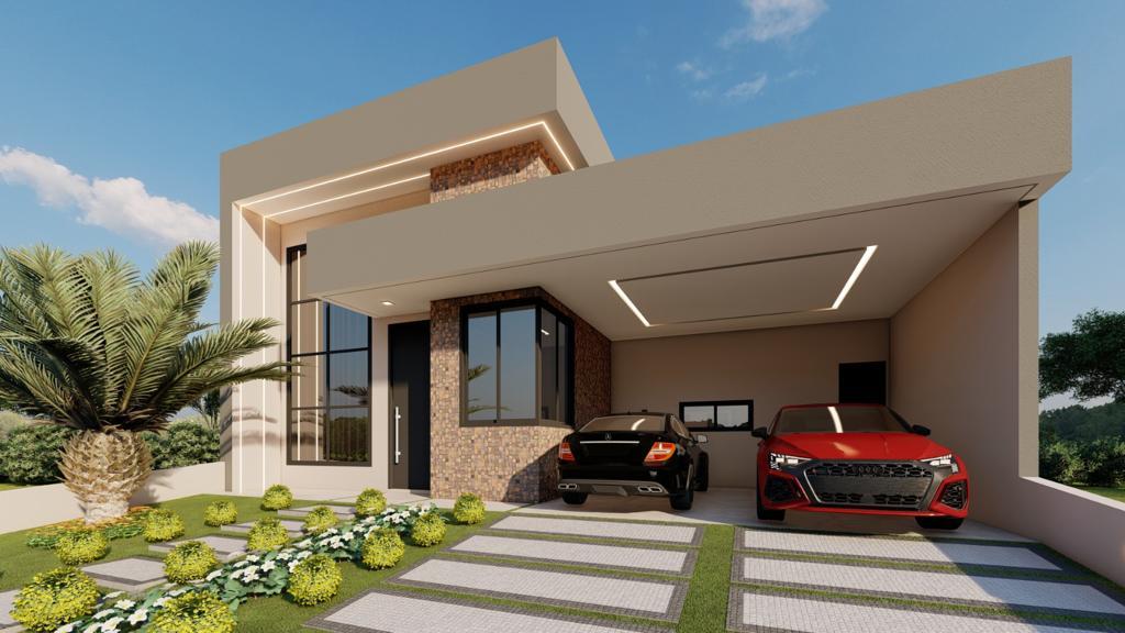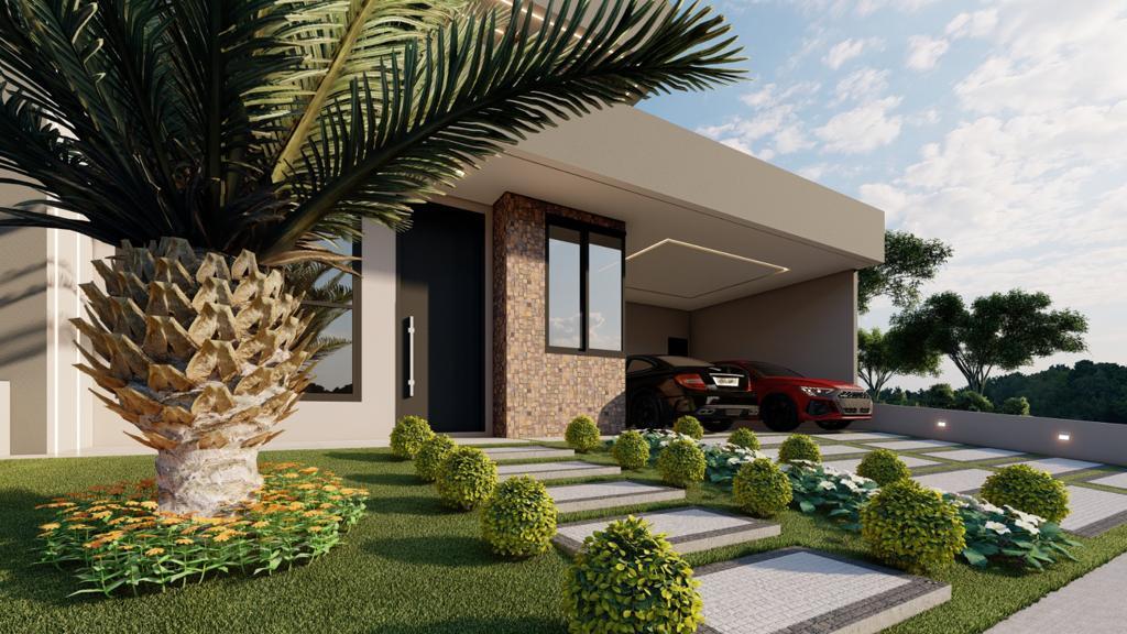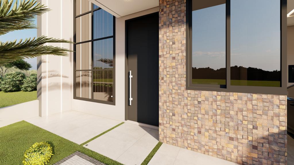 Essa linda casa térrea com três quartos suítes, incluindo a suíte master, e um banheiro social, além de um escritório, a casa atende às necessidades de uma família moderna. A sala integrada com a cozinha e a área gourmet proporciona um ambiente espaçoso e propício para o convívio familiar, enquanto a lavanderia e a garagem para 4 carros oferecem praticidade no dia a dia.