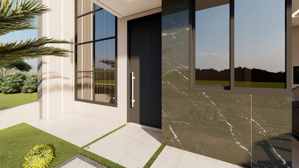 Os acabamentos escolhidos, como as esquadrias linha SUPREMA e GOLD na cor preta, as pedras soleiras e pingadeiras em Preto Negresco e mármore branco prime, e os porcelanatos em toda a casa, conferem elegância e durabilidade ao ambiente. Os móveis planejados na cozinha, áreas molhadas, banheiros e área gourmet são uma vantagem adicional, proporcionando funcionalidade e organização.