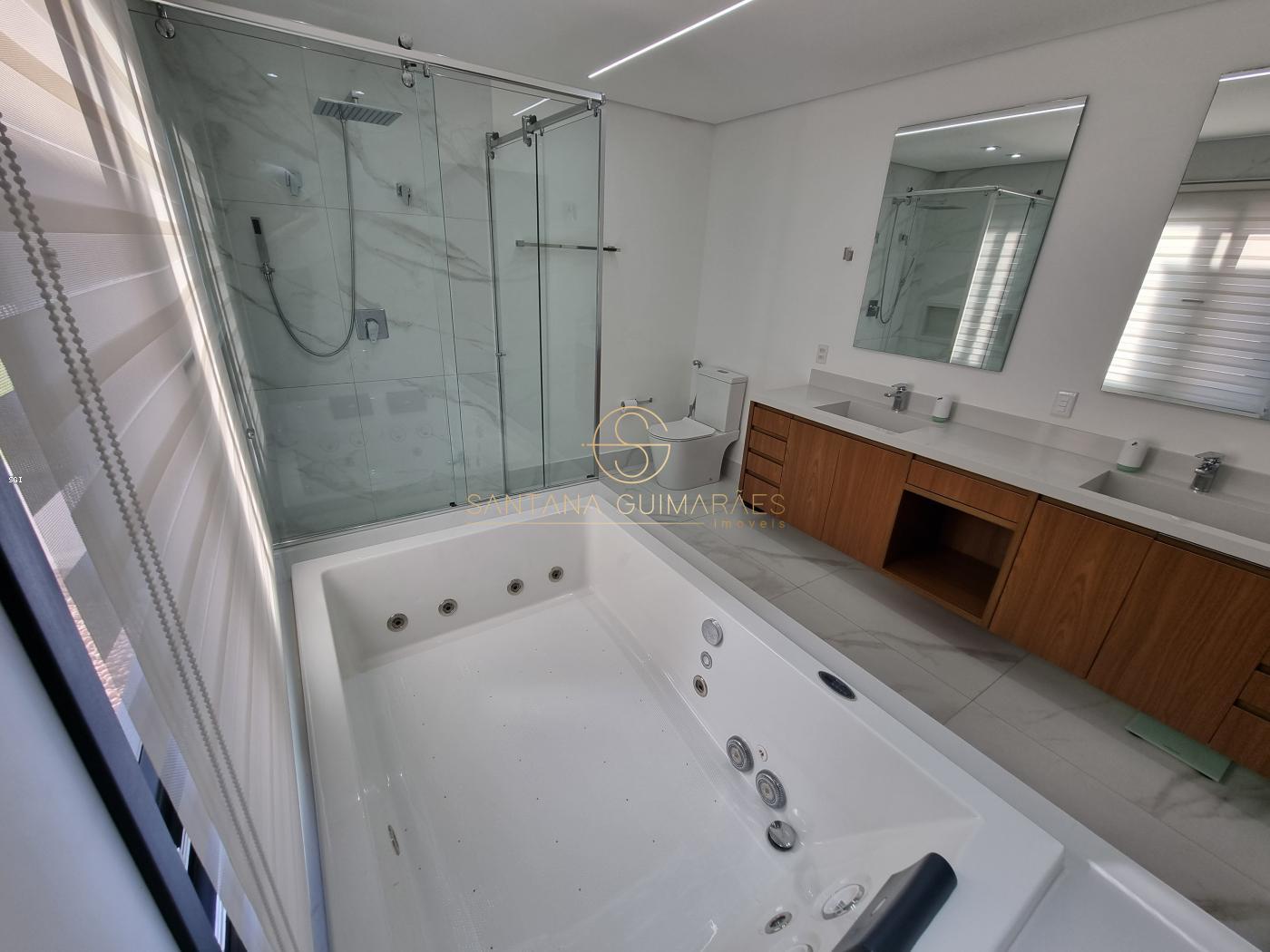 - 3 Suítes: Todas com ar condicionado quente/frio, proporcionando um ambiente agradável durante todo o ano. As suítes são espaçosas e bem iluminadas, com acabamentos de alta qualidade e persianas automatizadas para controle da luz e privacidade.