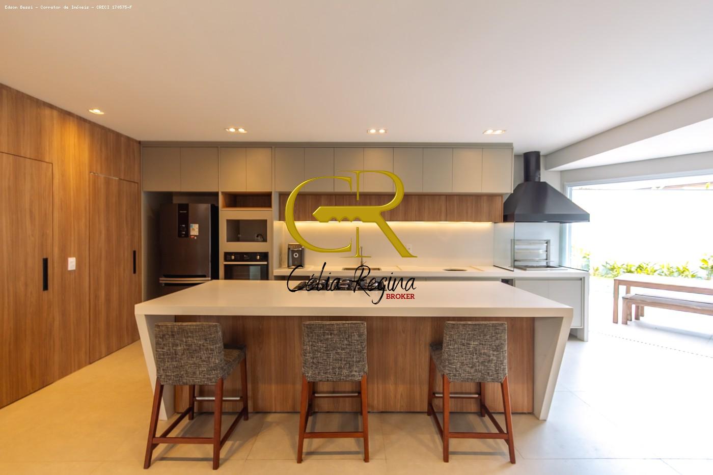 - Ampla cozinha integrada com área gourmet, com ar condicionado novo, repleta de planejados, painéis de madeira, portas embutidas, e uma linda ilha de quartzo.