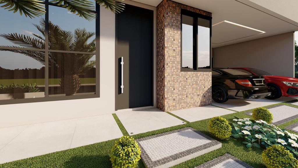 Essa linda casa térrea com três quartos suítes, incluindo a suíte master, e um banheiro social, além de um escritório, a casa atende às necessidades de uma família moderna. A sala integrada com a cozinha e a área gourmet proporciona um ambiente espaçoso e propício para o convívio familiar, enquanto a lavanderia e a garagem para 4 carros oferecem praticidade no dia a dia.