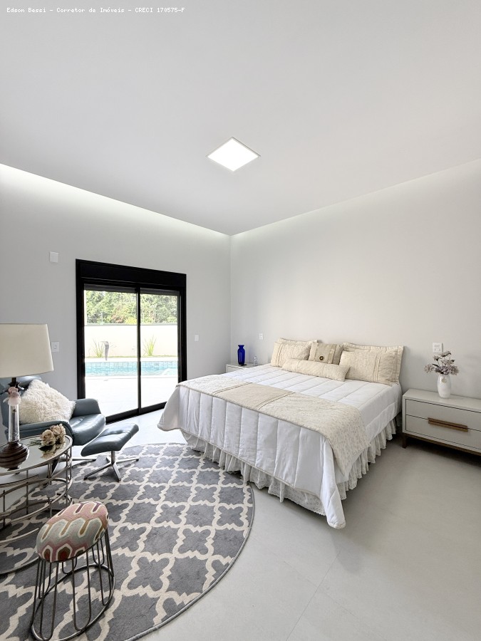 Com 290 m² de área construída distribuídos em 4 suítes com closet, um living com pé-direito duplo e ambientes integrados, esta casa contempla uma cozinha gourmet equipada com cooktop, despensa e ilha central.