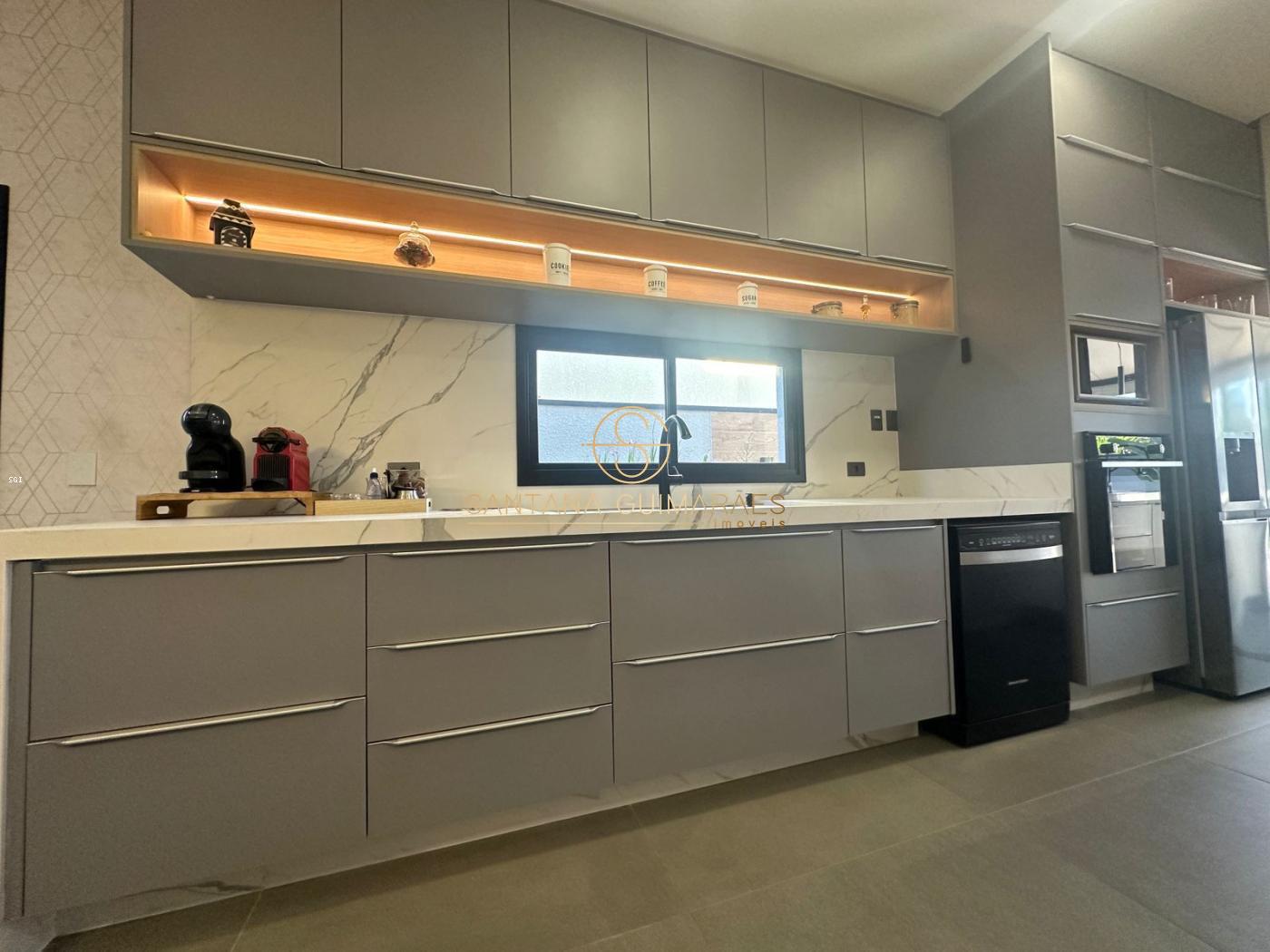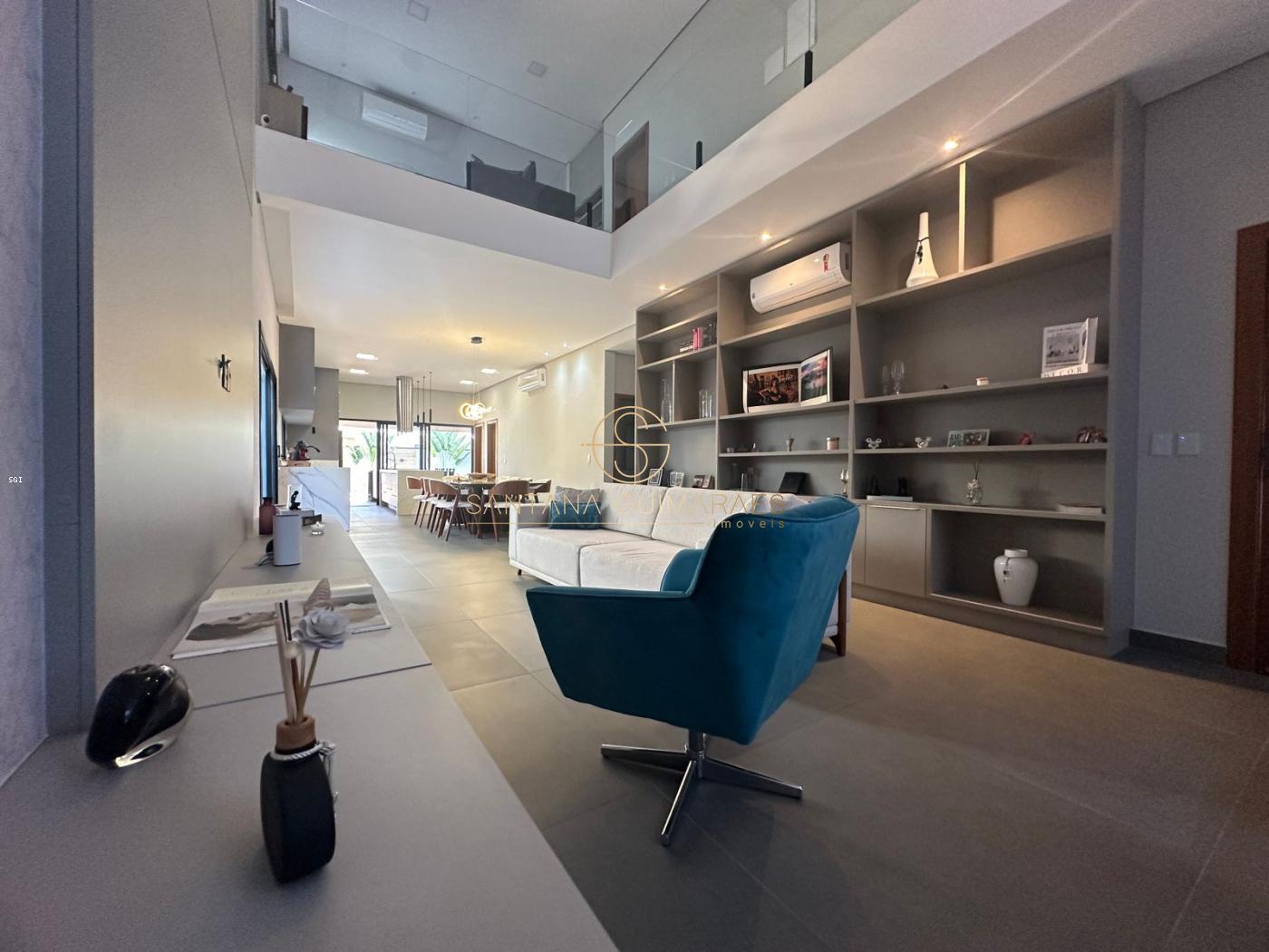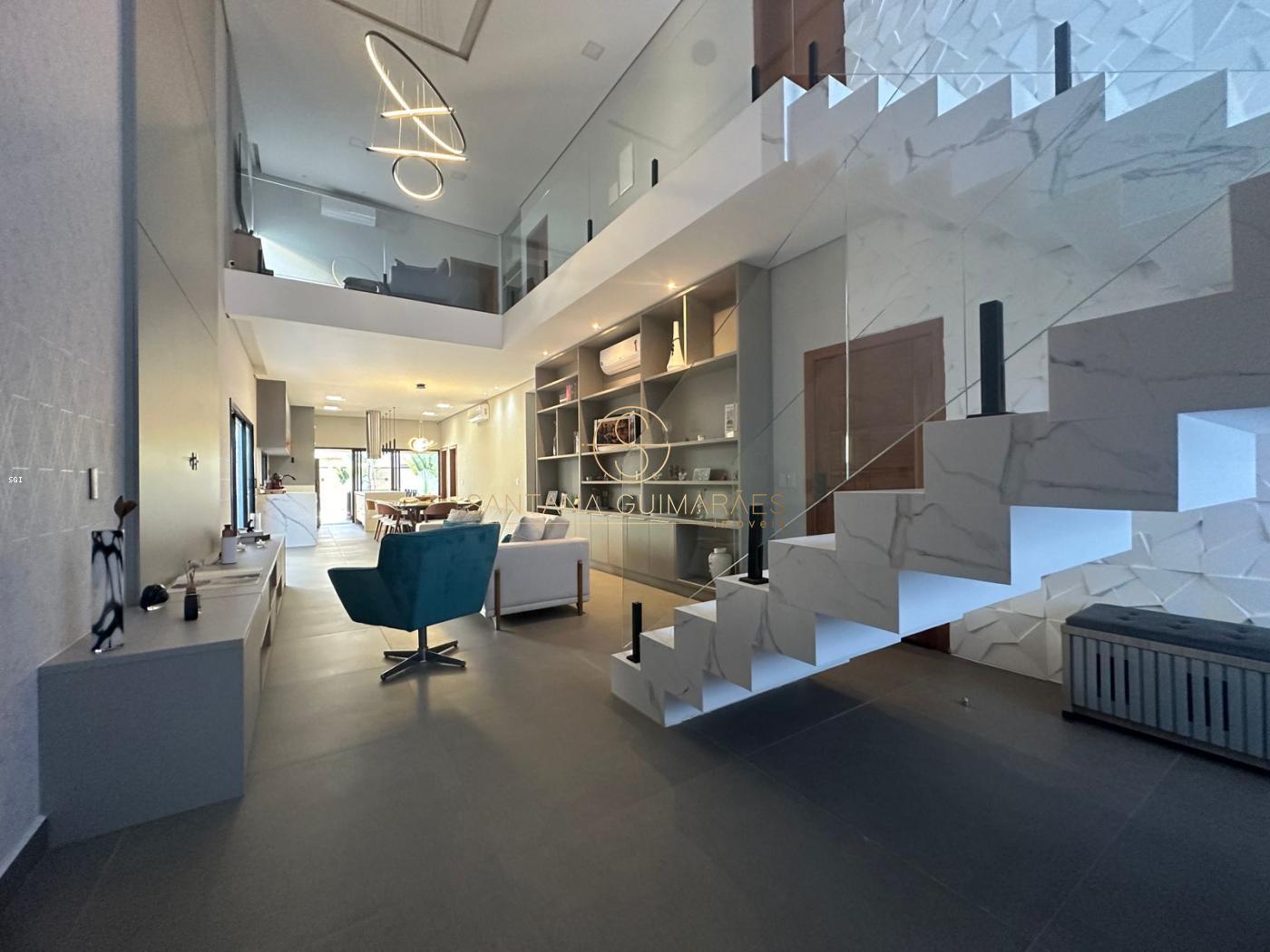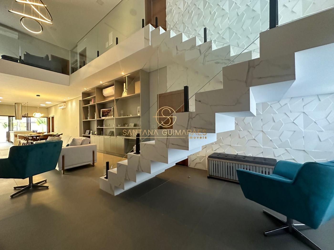 Sala de estar com pé direito duplo, sala de jantar, cozinha integrada, despensa, lavabo, área de serviço, escritório, suíte térrea, banheiro piscina, deposito, espaço gourmet, piscina, garagem para 4 carros e oficina.